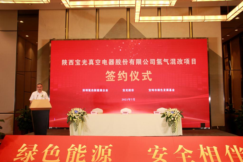 7月20日,陜西寶光真空電器股份有限公司氫氣混改項(xiàng)目簽約儀式在寶雞市海棠假日酒店海棠宴會(huì)廳舉行。