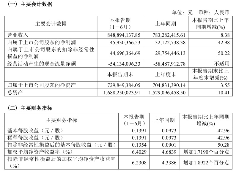 寶光股份2024年半年度主要財務(wù)指標(biāo)