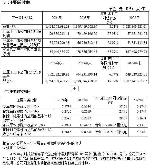 寶光股份2024年度主要會(huì)計(jì)數(shù)據(jù)和財(cái)務(wù)指標(biāo)