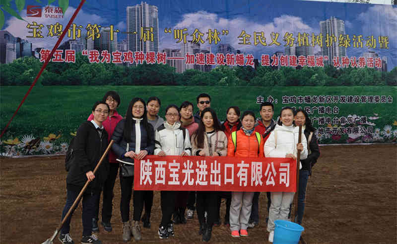 3月12日,在一年一度的植樹(shù)節(jié)到來(lái)之際,寶光進(jìn)出口公司的13名志愿者拿著鐵鍬,水桶等植樹(shù)工具來(lái)到了蟠龍新區(qū)光谷錦繡公園,參加了由寶雞廣播電臺(tái)組織的“我為寶雞種棵樹(shù)”學(xué)雷鋒活動(dòng)。